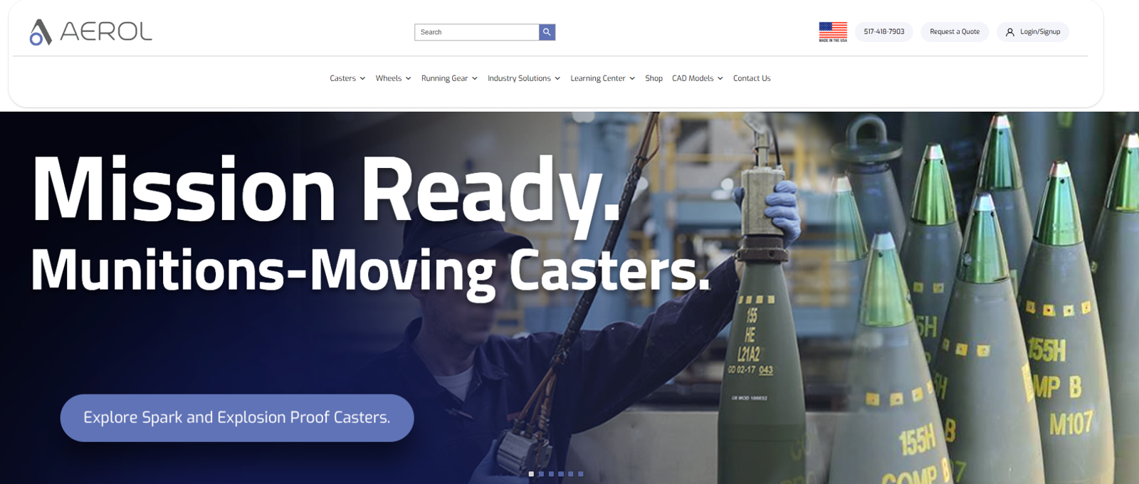 Known for precision and reliability, Aerol Casters offers a wide range of USA made casters for industrial, aerospace, and manufacturing applications. Their caster experts focus on durability and quiet, smooth operation, making them a preferred choice for demanding production floors.